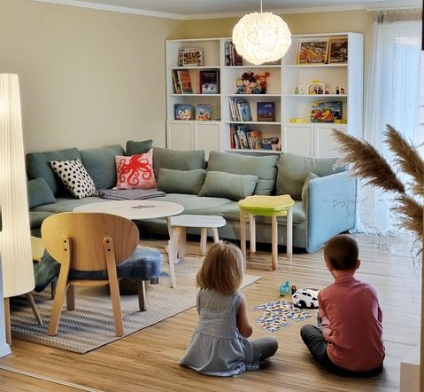 Wir wohnen in einem, 2025 komplett modernisierten, schönen und ansprechend gestalteten Einfamilienhaus mit ca. 240m2 Wohnfläche. Die Kinder leben in Einzelzimmern auf zwei Etagen.